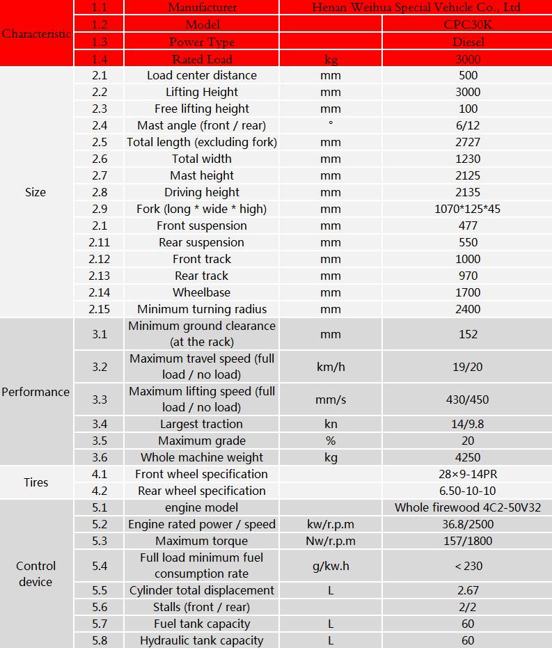 ディーゼル フォーク リフト説明電気システム コンポーネントは、よく知られているブランド、安定性と信頼性の高い性能、長寿命。操作関数は、さまざまな特別な操作デバイスの選択、車両使用率を向上できます。新しい国の 3 エンジン、省エネ、環境.